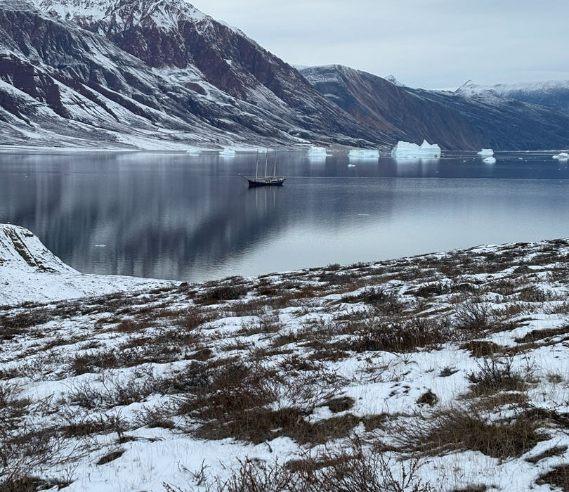Today marks a visit to the east entrance of one of the most impressive fjords in the world: Ø Fjord is almost 40 nautical miles long (74 km, 46 miles), with mountains on each side up to 2,000 meters high (6,562 feet), and icebergs that drift over depths of more than 1,000 meters (3,281 feet). The aim is to land at Jyttehavn and hike the tundra in mythic surroundings. We may also sail into Harefjord, Rypefjord, and Rödefjord, walking into C. Hoffmanhalvöya and on Storö. We will then land near Sydkap, where you can see colossal icebergs, some of them over 100 meters (328 feet) high and more than a kilometer long (.62 mile). Most of these bergs are grounded, as the fjord is only about 400 meters deep (1,312 feet). At Sakatajik we can also view the remains of Thule winter houses. As many as twenty people lived here once, hunting Greenland whales and building houses out of their vertebrae. If there is not too much cloud cover, you might enjoy the magical lightshow of the aurora borealis today.